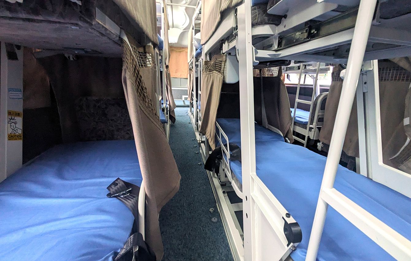 フルフラットシートを搭載したバス車内