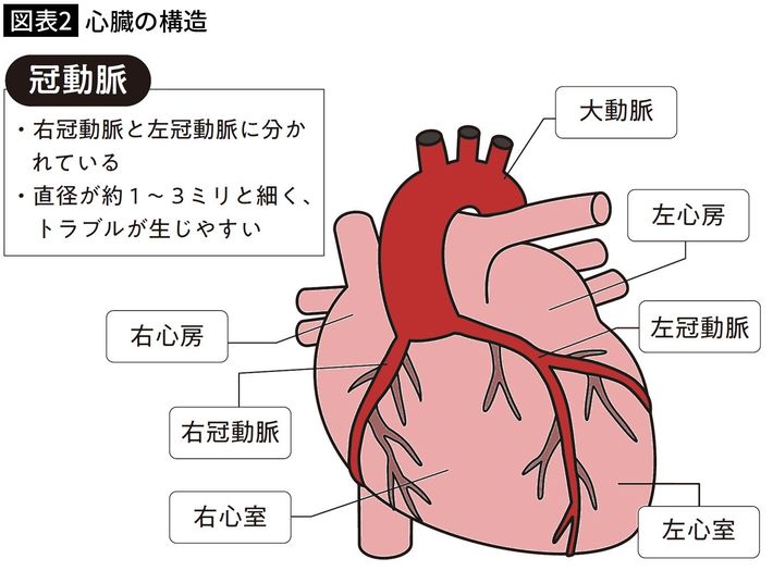 心臓の構造。特に冠動脈は疾患リスクが高い[出所=『