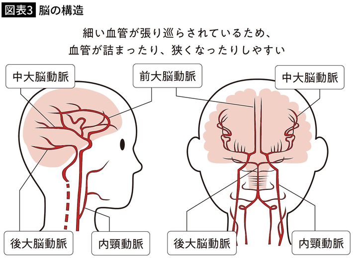 脳の構造。トラブルが起きにくい構造になっているが、それでもボロボロ血管に夜トラブルには弱い[出所=『
