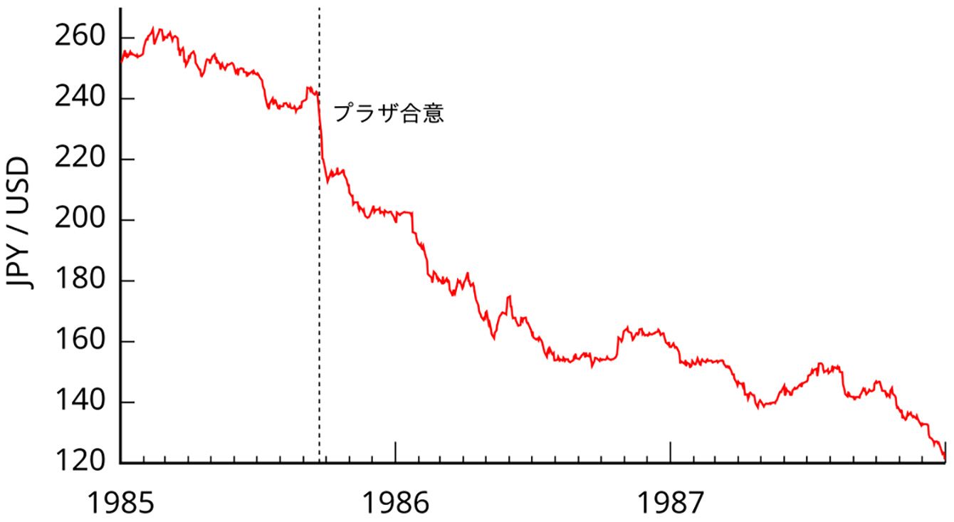 1985年1月1日から1988年1月1日までの円とドルの為替レートの推移(画像=Monaneko/CC-BY-3.0/