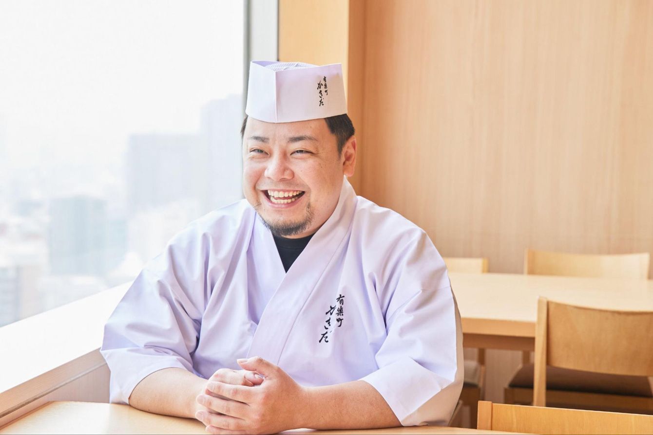 蛎田一博(かきだ・かずひろ)さん。1990年、広島県生まれ。大学卒業後、証券会社、人材会社を経て、25歳で株式会社ユニポテンシャルを起業。同社の代表取締役をしながら32歳で「有楽町かきだ」をオープンさせる。著書に『何者かになるための継続力 修業ゼロで予約困難店を作った寿司屋大将の思考法』(KADOKAWA)。