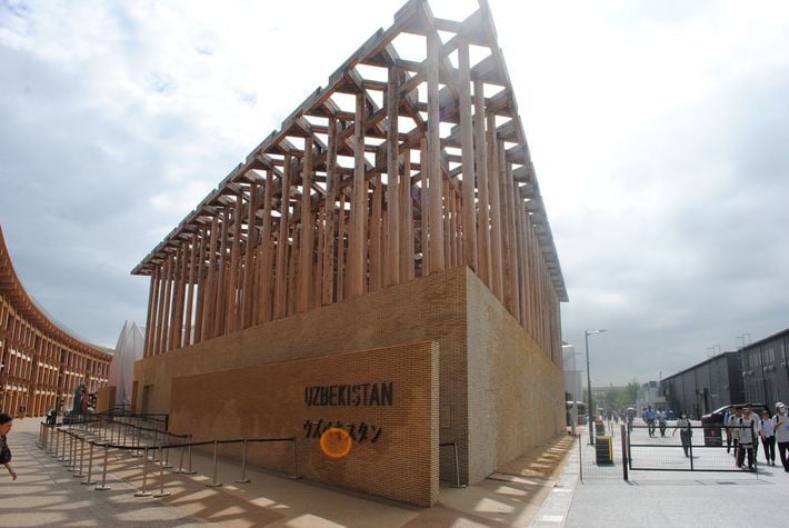 大阪周辺の山々から採取された杉の木の建築が印象的なウズベキスタン館