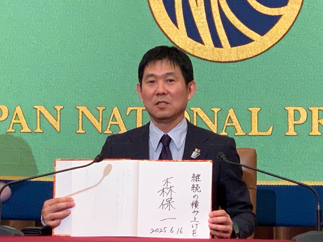 ワールドカップアジア最終予選。オーストラリアに敗れ、試合後に選手に声を掛ける森保一監督(中央)、背番号5番が佐野海舟選手=2025年6月5日、オーストラリア・パース