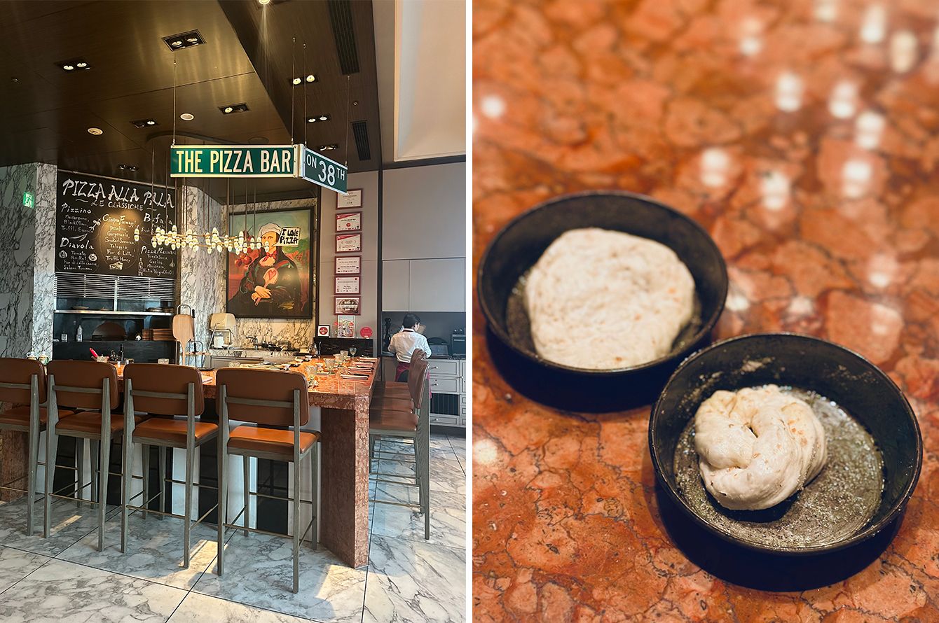 小皿に一人分の生地がサーブされ、それをこねて成形すると自分用に焼いてもらえる。写真は筆者と友人がこねた生地。こねているうちに愛おしくなってくるのが不思議で、より一層味わい深くなる(一気に食べてしまったけれど)。