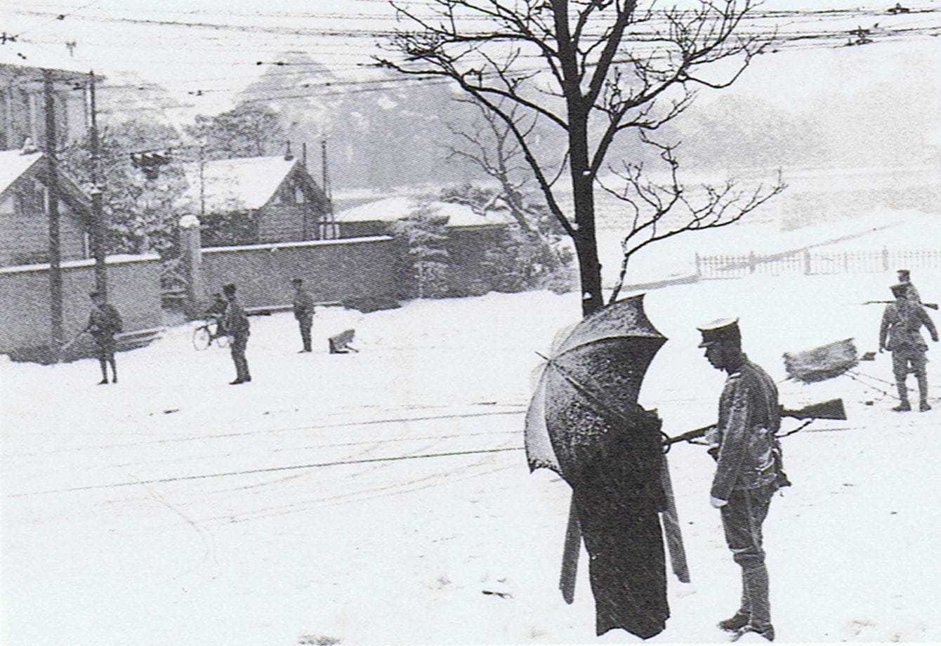 決起直後の半蔵門[写真=シリーズ20世紀の記憶『満洲国の幻影』(毎日新聞社 平成11年発行)229ページ/PD-Japan-oldphoto/