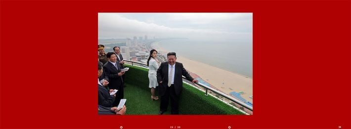 「元山葛麻海岸観光地区」を訪れた金正恩氏。画像出典=「労働新聞」ウェブサイト(2025年7月2日付記事)より