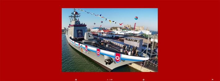 「崔賢級駆逐艦」の一番艦「崔賢」(チェ・ヒョン)。4月25日に南浦の造船所で進水式が行われた。画像出典=「労働新聞」ウェブサイト(2025年4月26日付記事)より