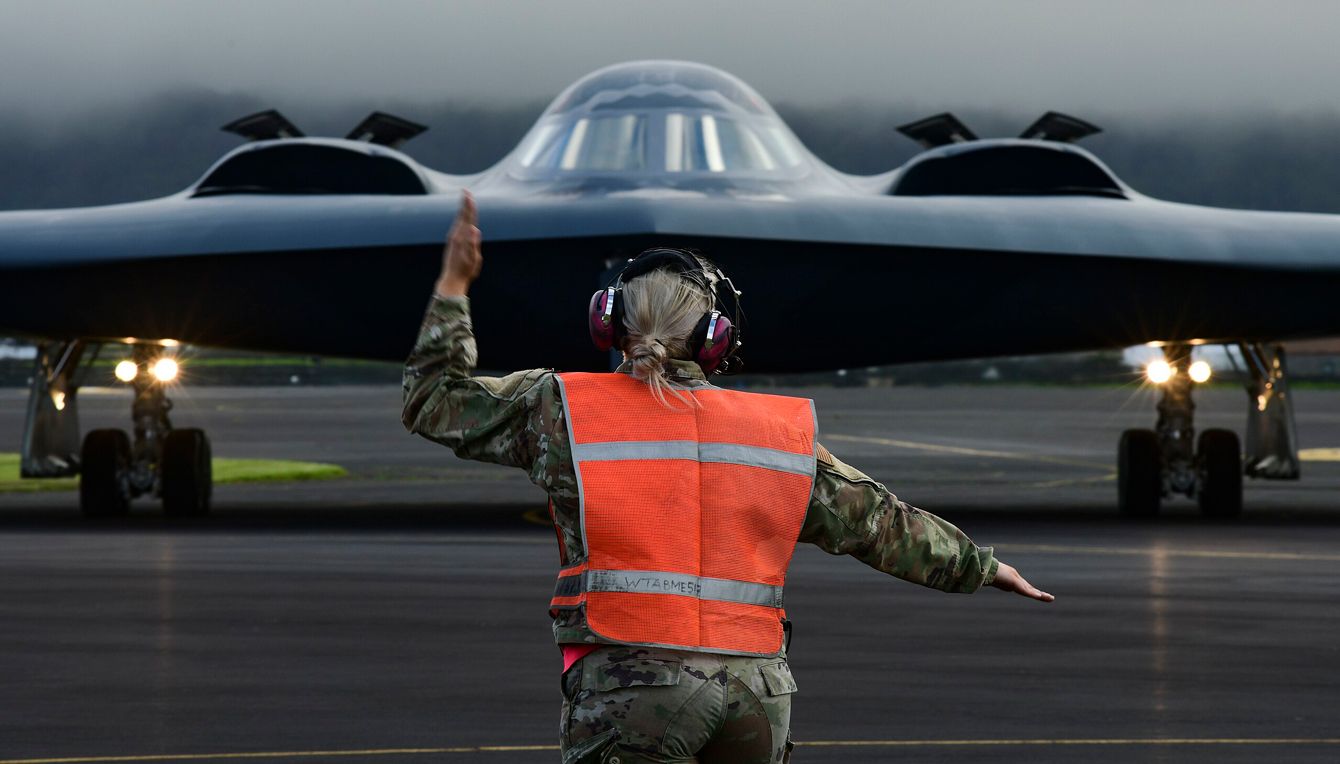 2023年8月30日、アイスランドのケプラヴィーク空軍基地で、ステルス爆撃機B-2スピリットの整備を行っているアメリカ空軍整備員(写真=アメリカ合衆国空軍/Robert Hicks/PD US Air Force/