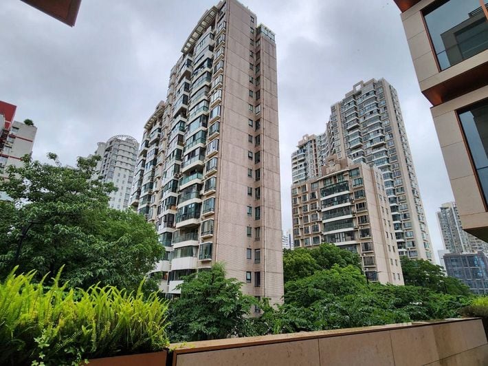 6月の上海市内の街並み。通りを歩く人はまばらだった