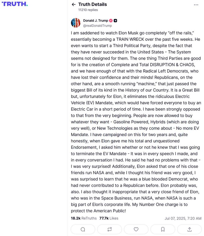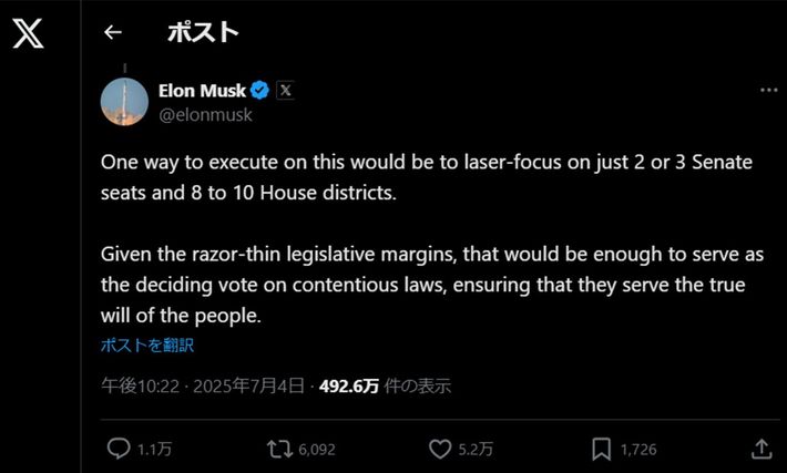 イーロン・マスクの「国外追放」をほのめかす…トランプ大統領がマスク新党「アメリカ党」を無視できない理由