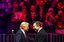 2025年1月19日、米国ワシントンD.C.のキャピタル・ワン・アリーナで行われた集会で、ドナルド・トランプ次期大統領(左)と実業家のイーロン・マスク氏(右)が壇上に立った。