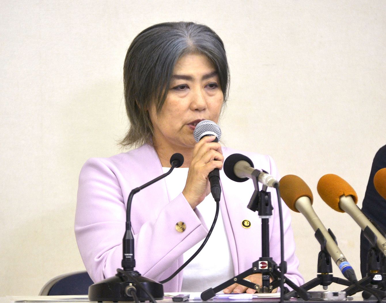 記者会見する静岡県伊東市の田久保真紀市長=2025年7月7日、同市