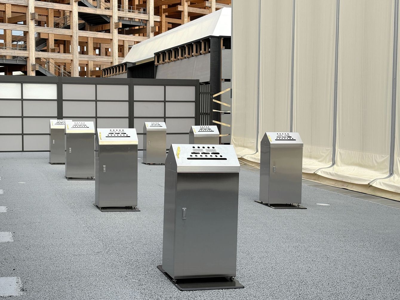 大屋根リング西側に設置された喫煙所。EXPOメッセ「WASSE」のすぐ隣にある=2025年6月25日午後6時47分、大阪市此花区