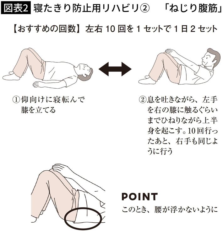 寝たきり防止用リハビリ② 「ねじり腹筋」(出所=『