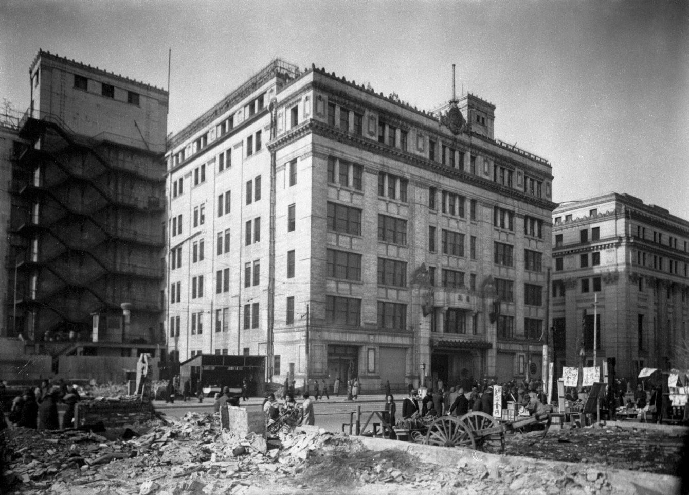 終戦後の三越本店、1946年1月17日、東京・日本橋