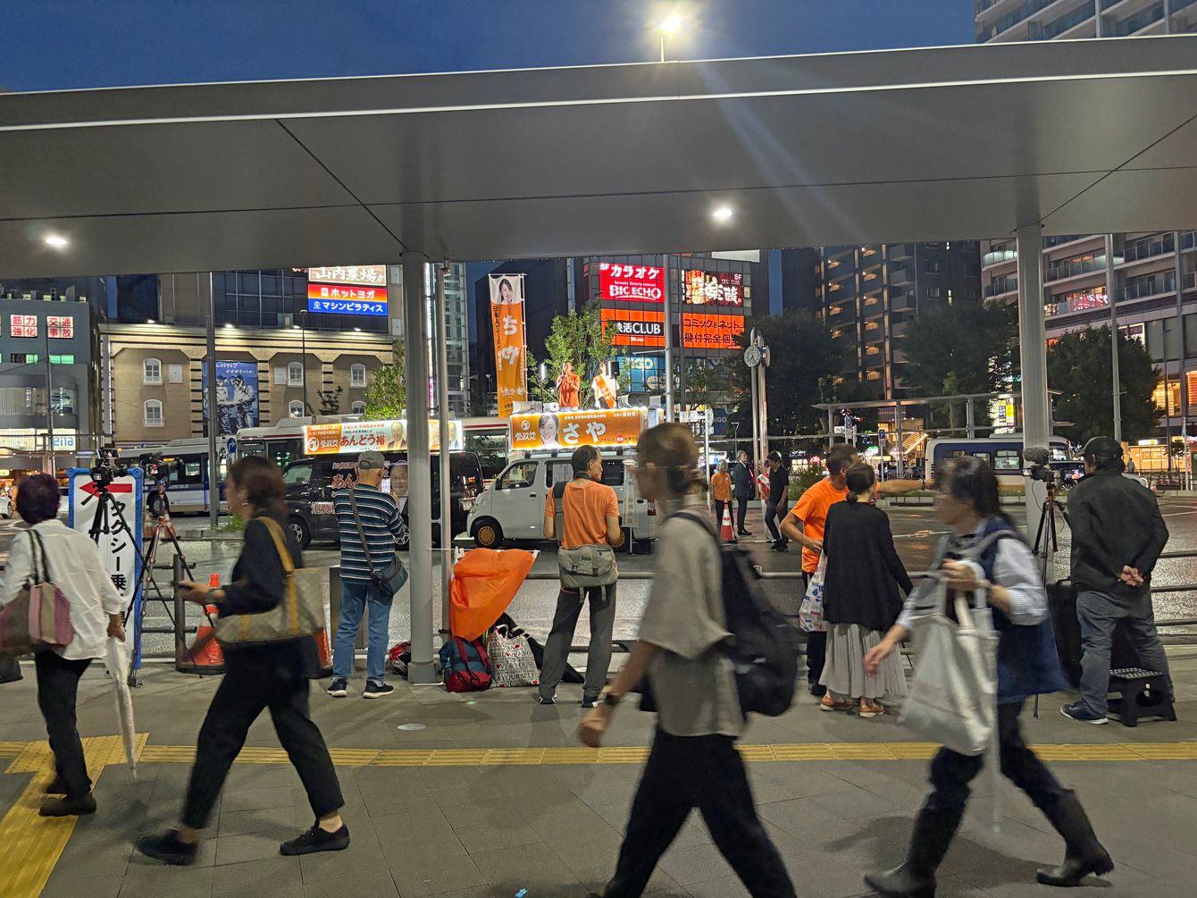 参政党東京地区さや候補の街頭演説、2025年7月15日、東京都調布市