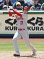 米大リーグ、アスレチックス戦で、今季1号のソロ本塁打を放つエンゼルスの大谷翔平=2023年4月、オークランド(共同)