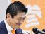 メディアのインタビューに答える参政党の神谷代表=2025年07月20日午後11時5分、東京都新宿区