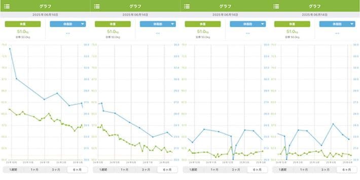 ダイエット開始から1年9カ月間の体重・体脂肪率の推移(画像提供=あすけん)
