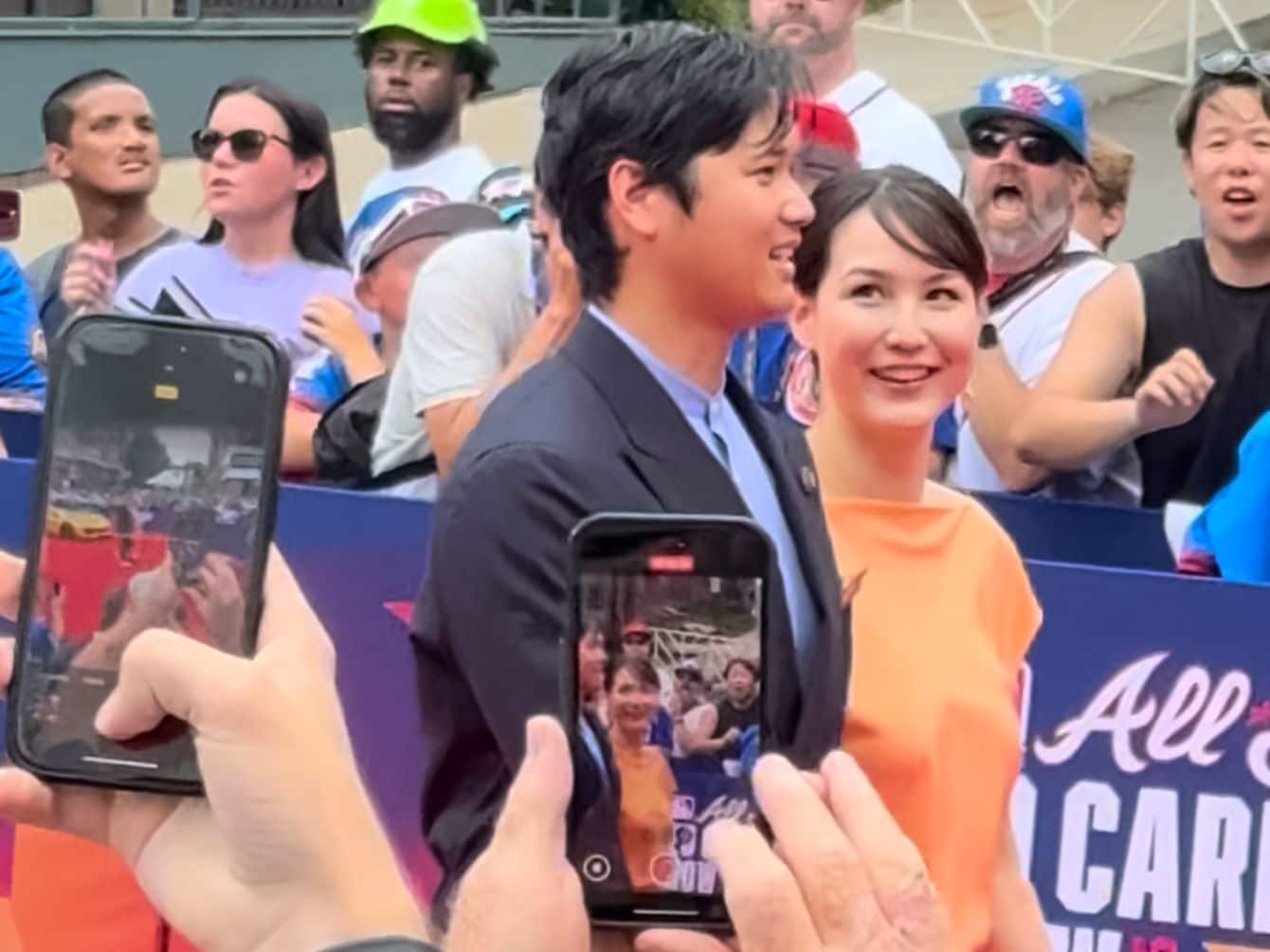 レッドカーペットを歩く大谷夫妻。