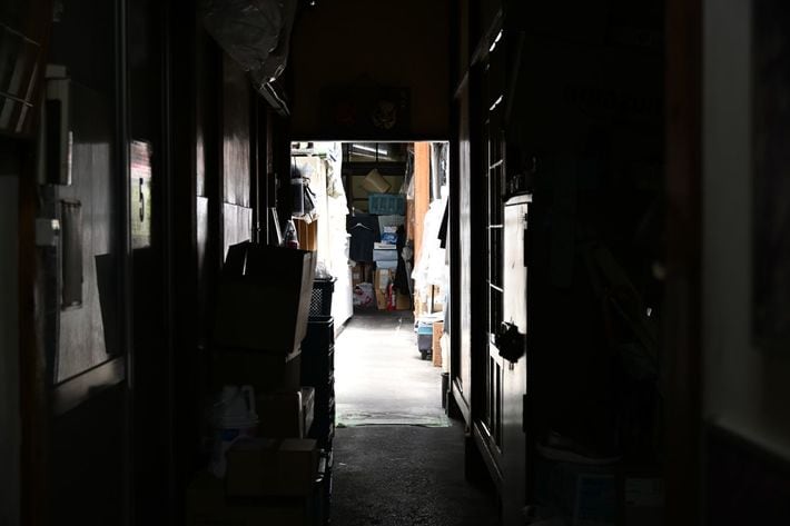喫茶から作業場に続く通路。全体に気持ちのいい風が通っている。