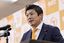 メディアのインタビューに答える参政党の神谷代表=2025年7月20日、東京都新宿区