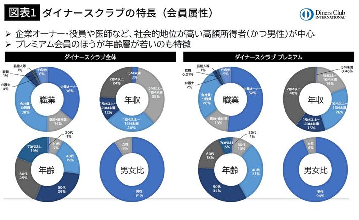 「ダイナースクラブカード」(左)。「プレミアムカード」(中央)や「ロイヤルプレミアムカード」(右)はシルバーとブラックのメタルカードも発行する