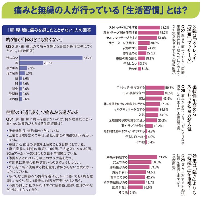 マッサージ、湿布、ストレッチ…1600人調査で判明! 「肩・腰・膝」満足度の高い治療法&頼りになる施設