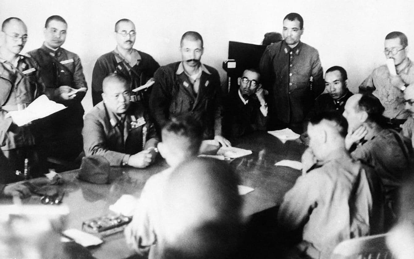シンガポール陥落後に降伏交渉をする山下奉文陸軍中将とイギリス陸軍パーシバル中将(1942年2月15日)(写真=帝国戦争博物館/PD-Japan-oldphoto/