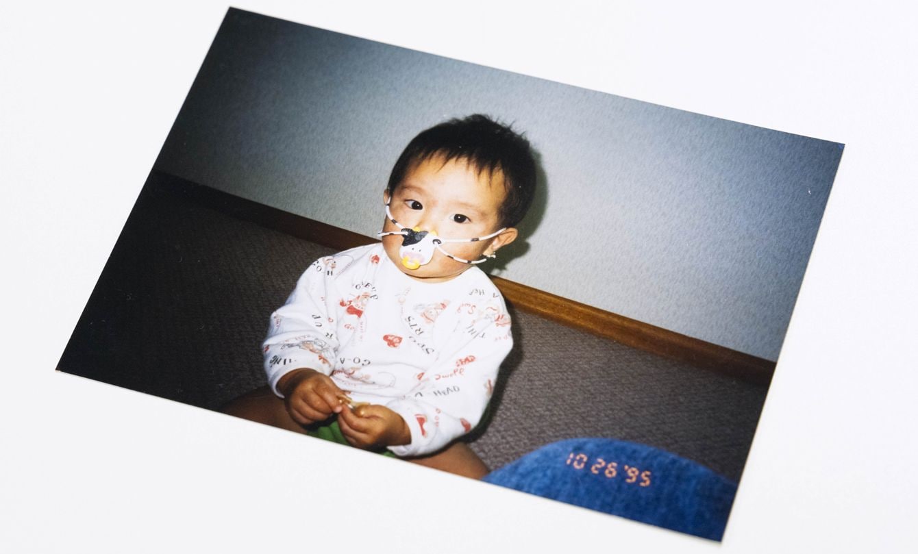 第2子の息子が小さかったとき、くわえていたおしゃぶりを落としてしまうことを不便に感じて福井さんが発明した「モーモーおしゃぶり」