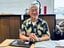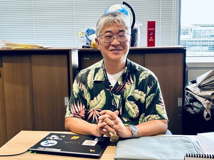 仕切りのないオープンな「社長席」に座る西田社長。ZIPAIRのこれからを熱く語った