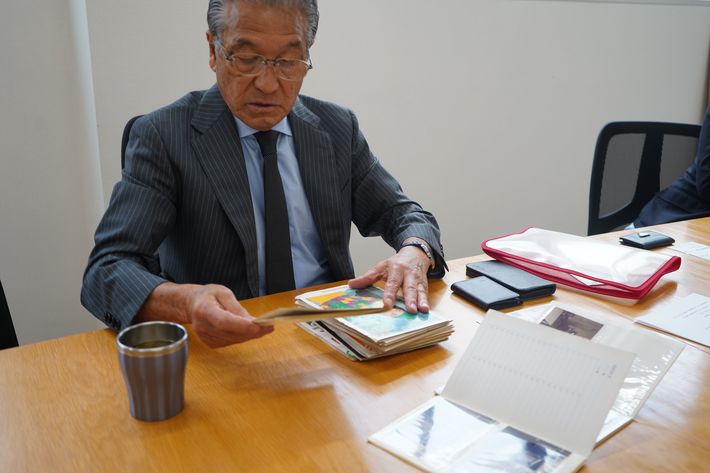 昔のアルバムを開く山田社長