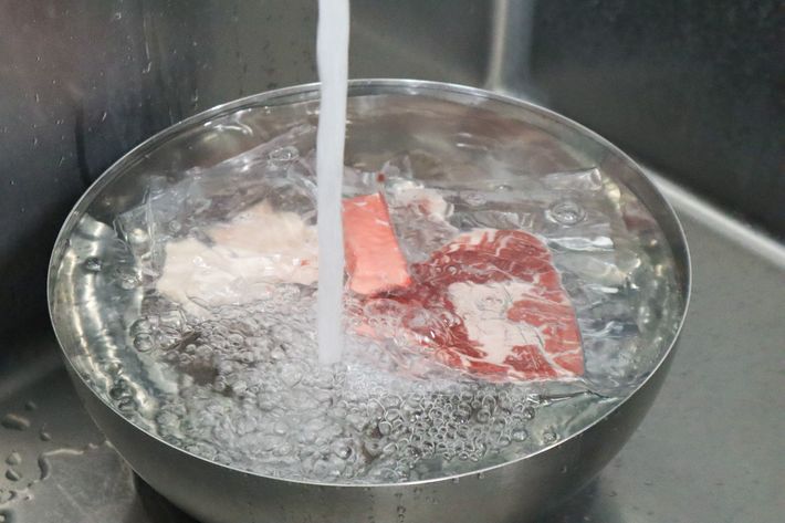 試食の準備。牛肉は流水ですぐに解凍できた