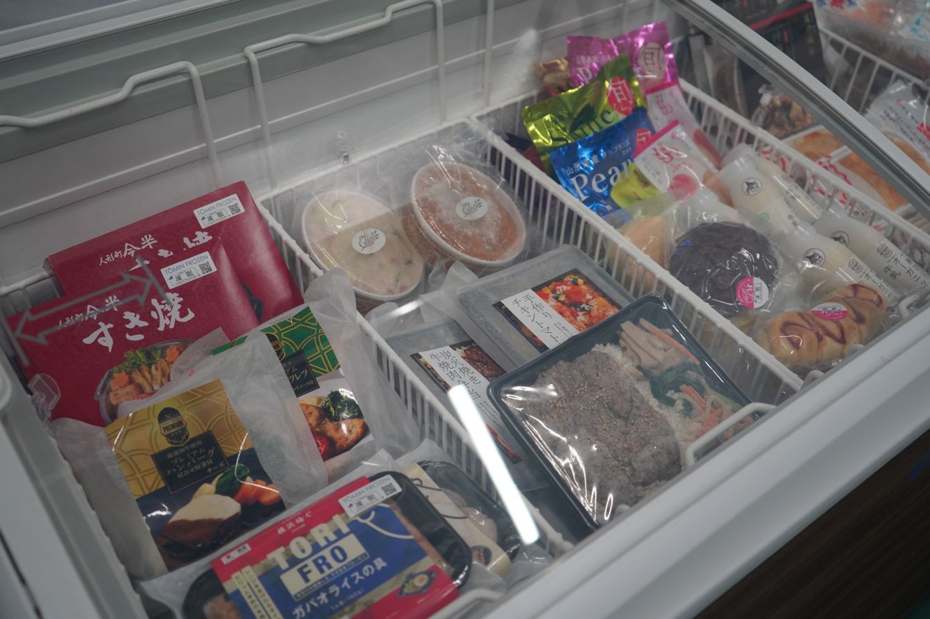 横浜市都筑区にある冷凍食品専門店「TŌMIN FROZEN」。「凍眠」を使った冷凍食品が並んでいる