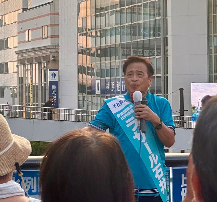 2025年7月、第27回参議院議員通常選挙における選挙活動中のラサール石井氏(写真=Nesnad/CC-BY-4.0/