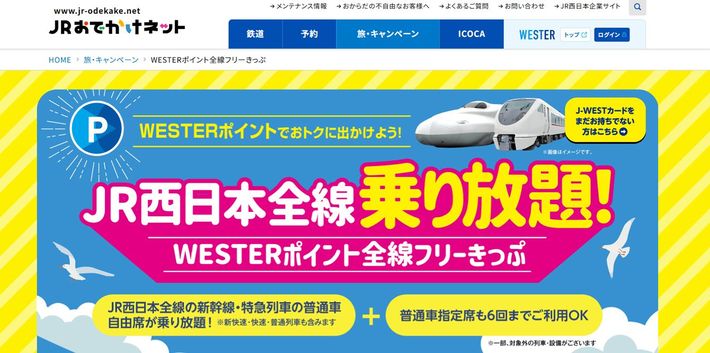 JR西日本「WESTERポイント全線フリーきっぷ」