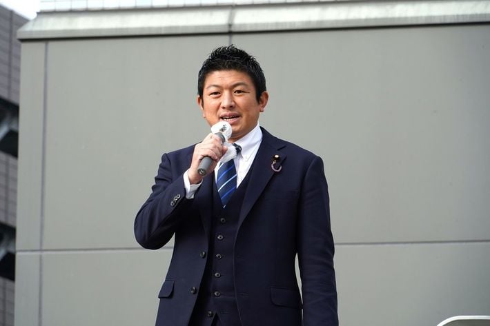熊本駅前で街頭演説をする神谷宗幣氏(写真=Noukei314/CC-BY-SA-4.0/
