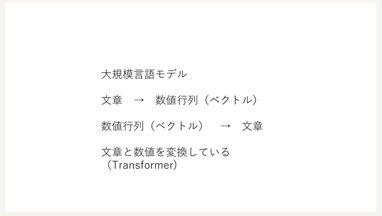 LLMは文章をベクトルに、ベクトルを文章に「変換」することで回答を導き出し、答える
