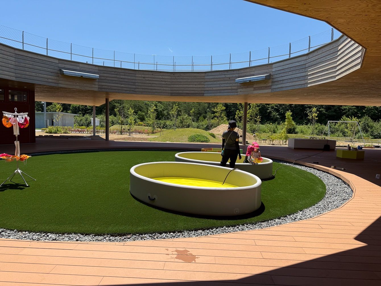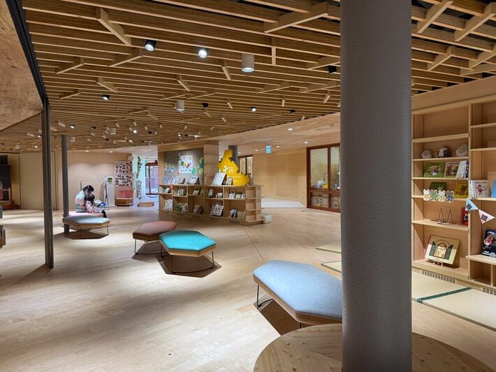 木をふんだんに使用したデザインで子どもが落ち着けるスポットが随所に用意されている