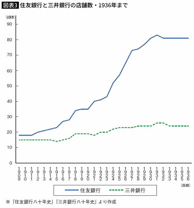 住友が勢いを増し、銀行の支店数では三井の約4倍に