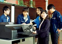 約20名のグループで次世代エンジンの先行開発を行う向島美香さん。コマツに入社した当時は「開発」ではなく、本業ではない「研究」からのスタートだった。
