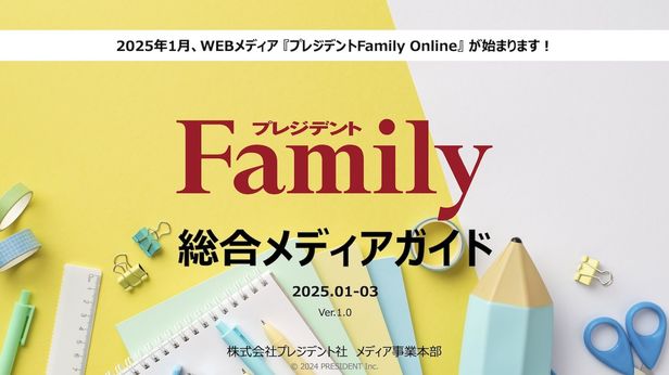 Webメディア「プレジデントFamily Online」は、“自分の頭で考える子”に育つための情報をお届けする、子育て家庭のための新・定番情報サイトです。「塾・習い事」「英語」「算数」「中学受験」「小学校受験」「医学部進学」など、最新の教育事情や受験トレンドを深掘りすると同時に、「食育」「健康」「レジャー」「生活環境」など、家庭の暮らしをより豊かにする情報もお届け! 子育てを楽しむすべてのご家庭をサポートします。
