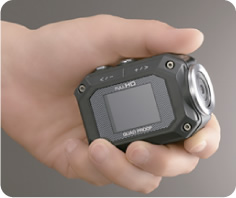 防水性は、水深5mで30 分までの撮影が可能。対衝撃性は、2mの高さから厚さ5cm の合板に落とすテストをクリア。砂や土ぼこりをかぶっても影響を受けない防塵性を備え、気温-10℃でも撮影できる耐低温性を持つ。