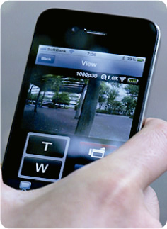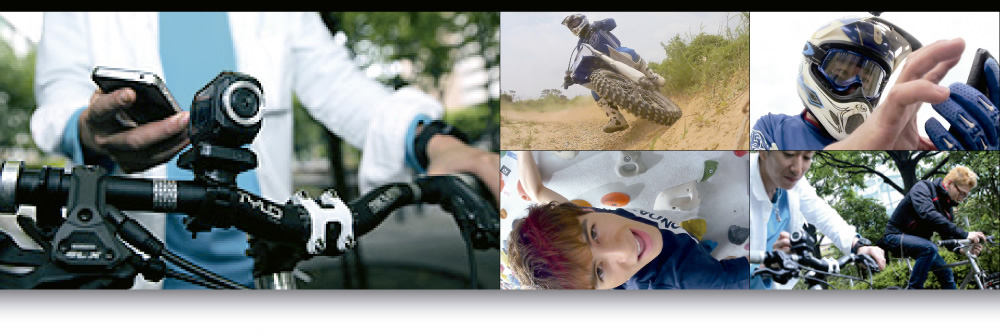 スポーツシーン対応の「GC-XA1」は、たとえばBMX のハンドルやヘルメット、あるいはゴーグルにマウントするなど、固定して撮影する使用法を基本に考えられている。その場合、画角の調整が難しいのだが、「GC-XA1」はスマートフォンとWi-Fi 接続することにより、スマートフォンの画面で画角を容易に確認できる。